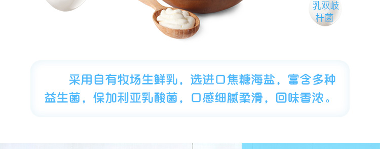自有生態(tài)循環(huán)牧場(chǎng)鮮牛乳,搭配海鹽完美發(fā)酵,小小容量里有豐富口感。
